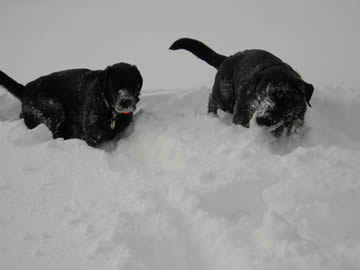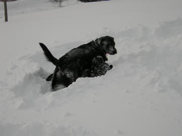 Kestrel in her special 'danner ........................................................... Kestrel in the Blizzard of 2005