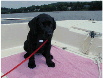 ![]() She's quite fond of boating although you couldn't tell from the look on her face- on her first day at sea. |
