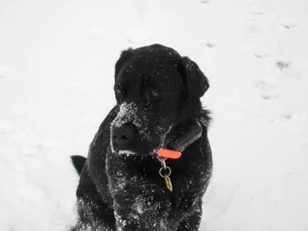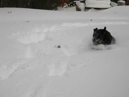 Kestrel in her special 'danner ........................................................... Kestrel in the Blizzard of 2005